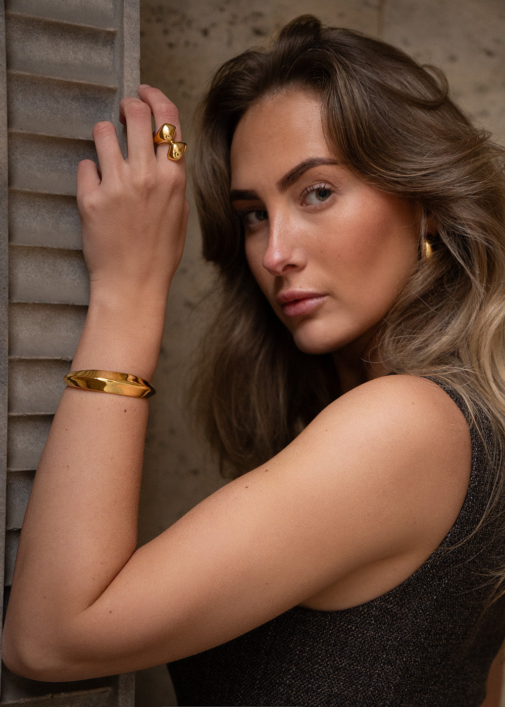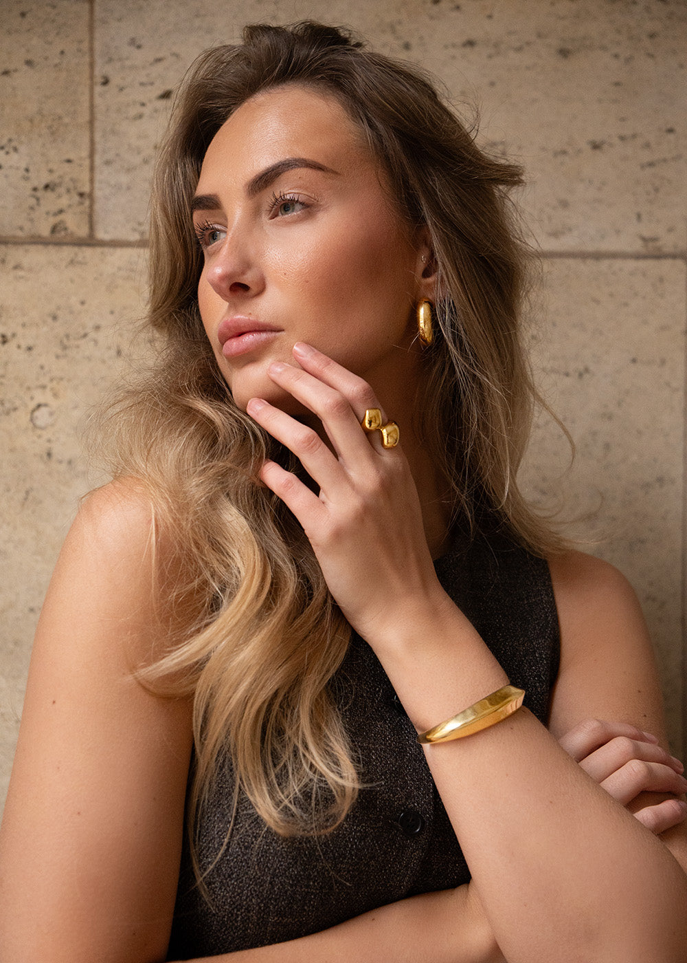 Vores premium rustfri stål er af højeste kvalitet, sikkerhedstestet og fuldt EU-godkendt. Guldbelagte designs bruger avanceret PVD-belægning, som gør dem op til 10× mere holdbare end traditionel forgyldning. De er meget slidstærke – selv i havet, poolen eller fitness – men vi anbefaler stadig at behandle dem med omtanke. Vi tilbyder 2 års garanti på vores produkter.