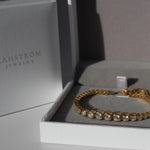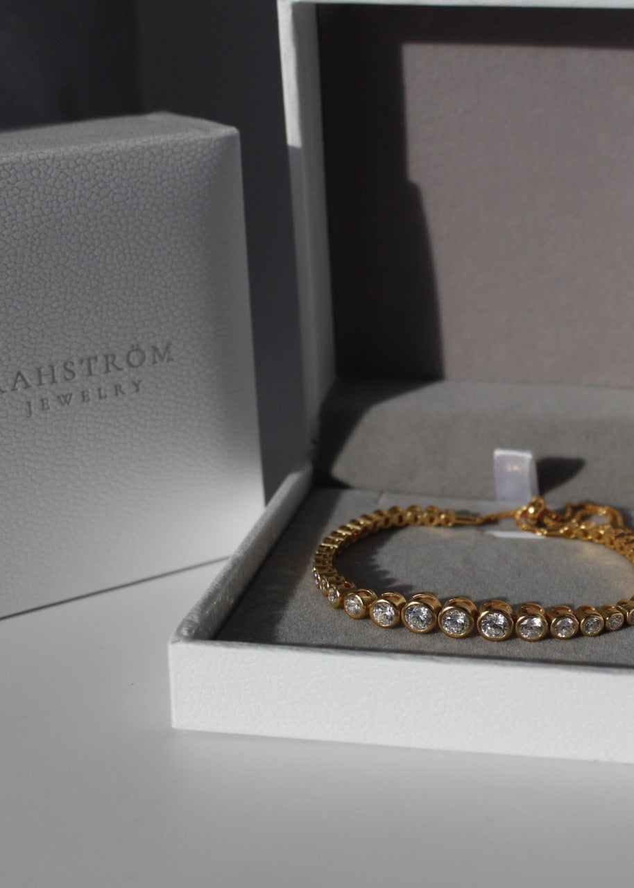 Vores premium rustfri stål er af højeste kvalitet, sikkerhedstestet og fuldt EU-godkendt. Guldbelagte designs bruger avanceret PVD-belægning, som gør dem op til 10× mere holdbare end traditionel forgyldning. De er meget slidstærke – selv i havet, poolen eller fitness – men vi anbefaler stadig at behandle dem med omtanke. Vi tilbyder 2 års garanti på vores produkter.