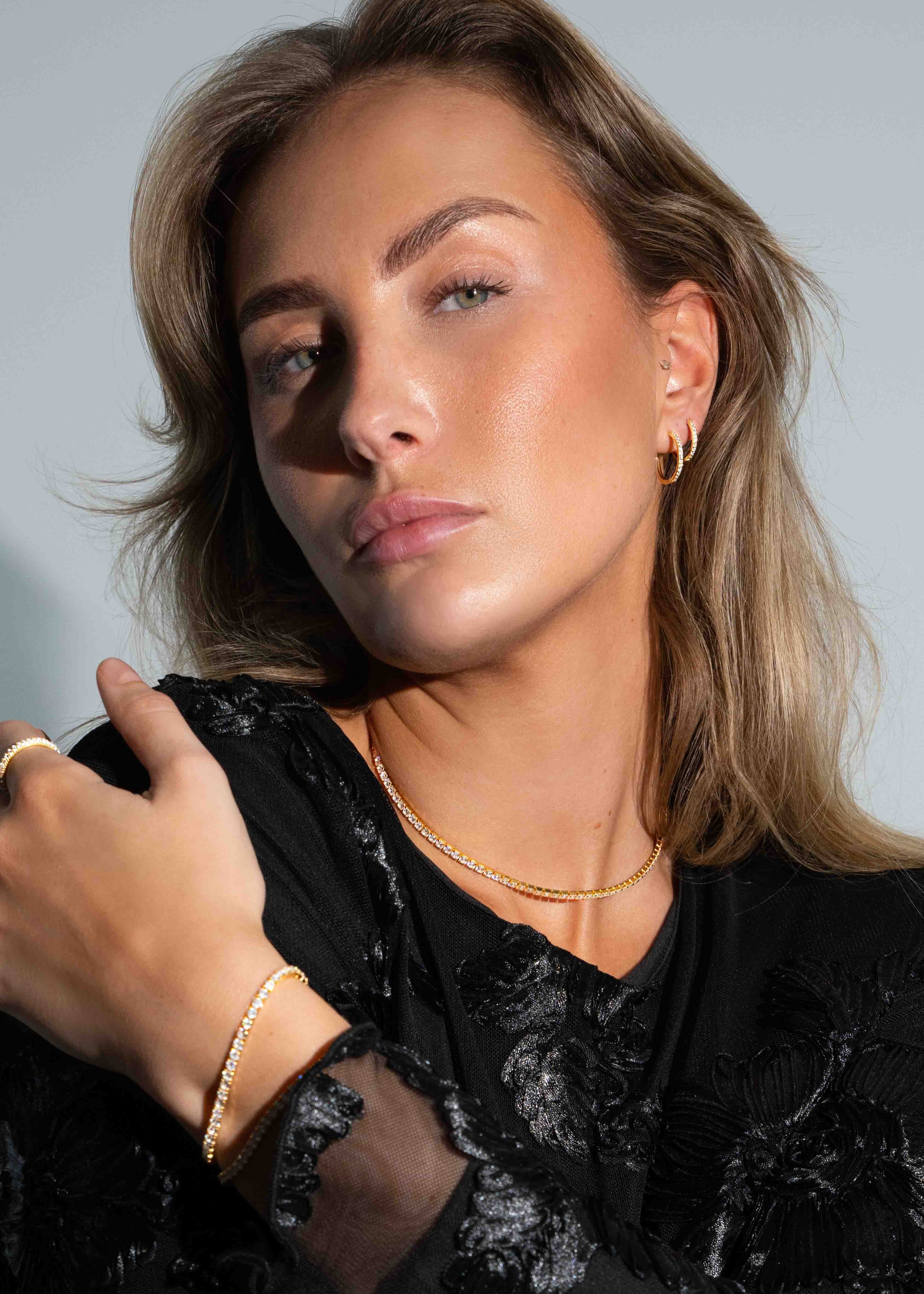 Vores premium rustfri stål er af højeste kvalitet, sikkerhedstestet og fuldt EU-godkendt. Guldbelagte designs bruger avanceret PVD-belægning, som gør dem op til 10× mere holdbare end traditionel forgyldning. De er meget slidstærke – selv i havet, poolen eller fitness – men vi anbefaler stadig at behandle dem med omtanke. Vi tilbyder 2 års garanti på vores produkter.