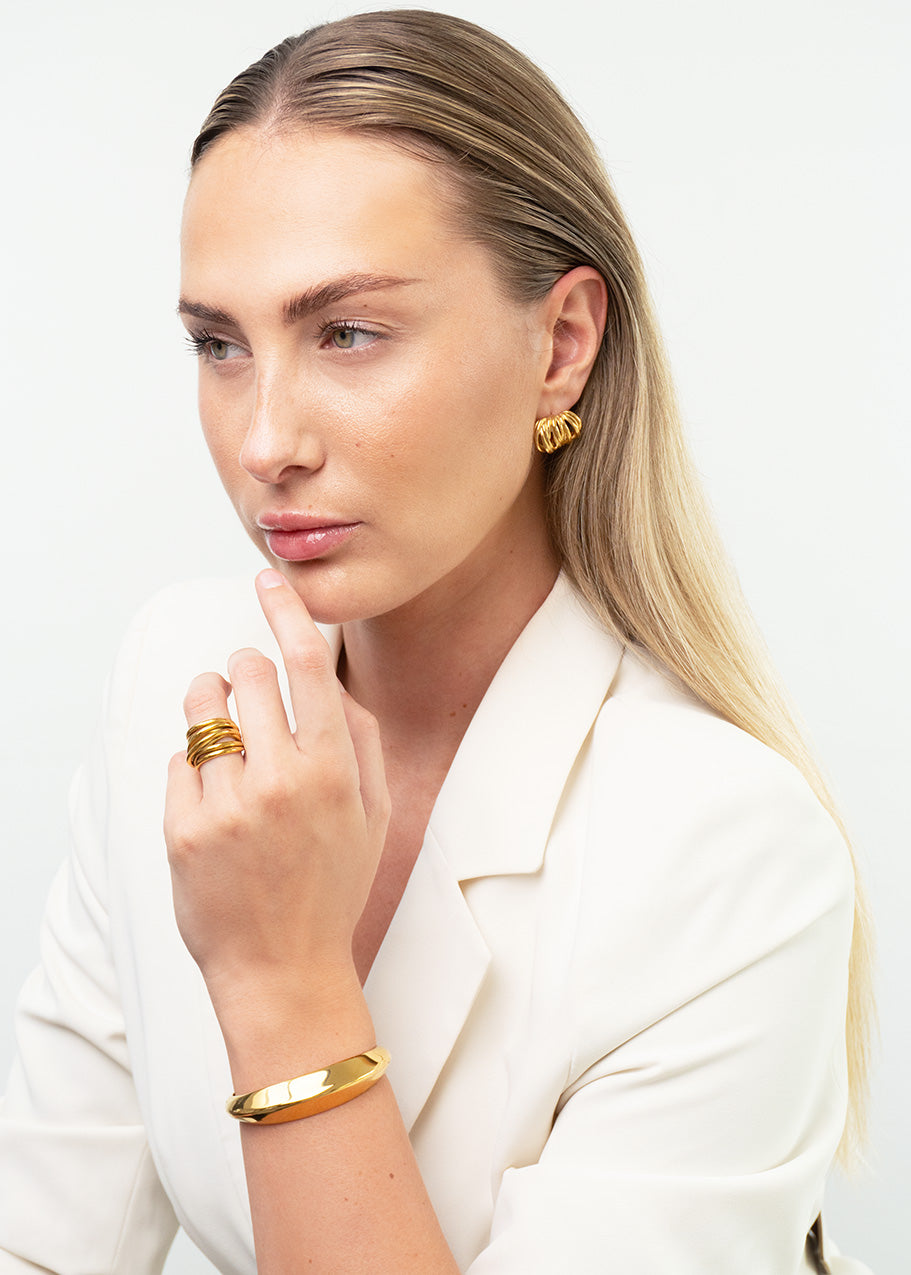 Vores premium rustfri stål er af højeste kvalitet, sikkerhedstestet og fuldt EU-godkendt. Guldbelagte designs bruger avanceret PVD-belægning, som gør dem op til 10× mere holdbare end traditionel forgyldning. De er meget slidstærke – selv i havet, poolen eller fitness – men vi anbefaler stadig at behandle dem med omtanke. Vi tilbyder 2 års garanti på vores produkter.
