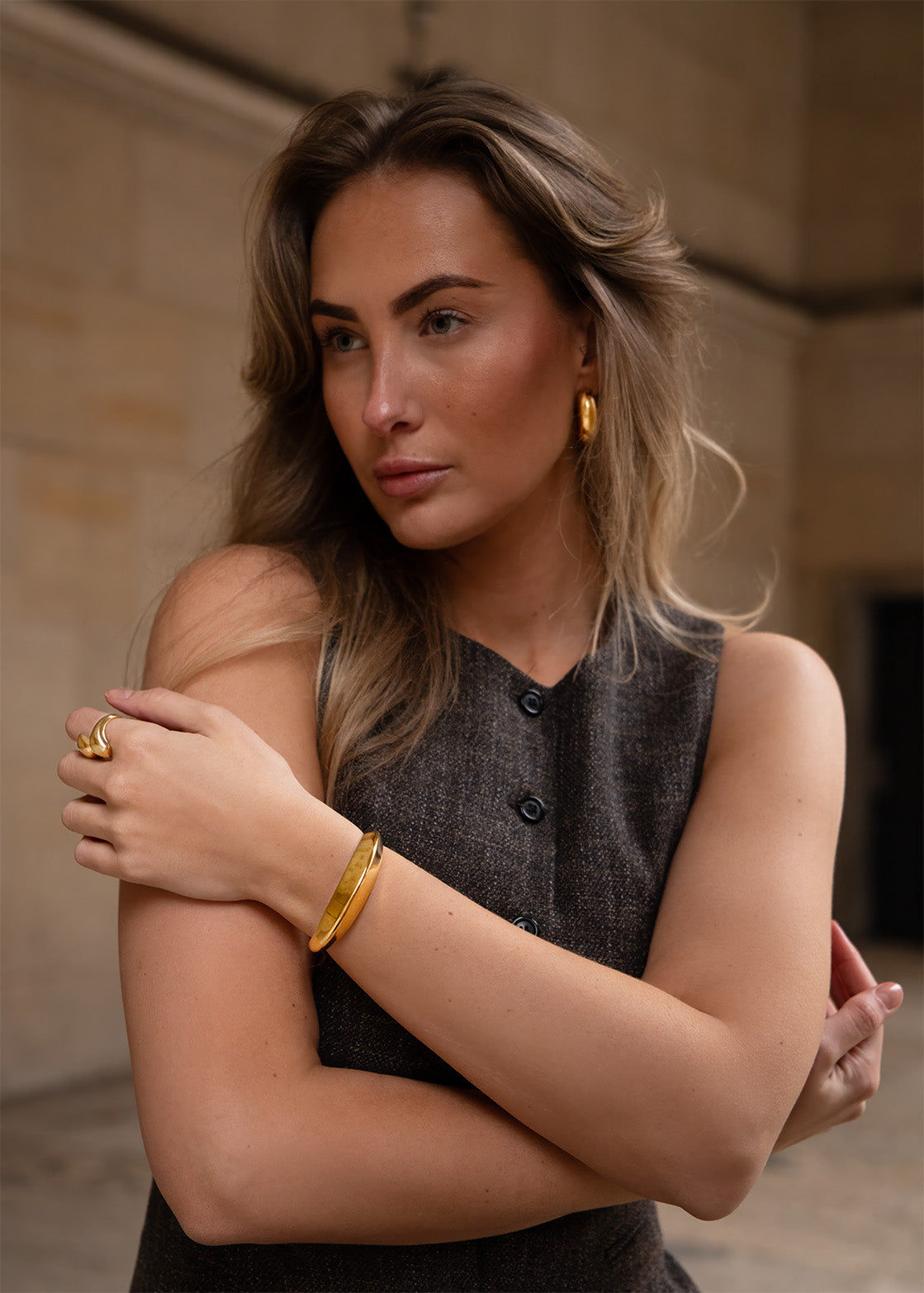 Vores premium rustfri stål er af højeste kvalitet, sikkerhedstestet og fuldt EU-godkendt. Guldbelagte designs bruger avanceret PVD-belægning, som gør dem op til 10× mere holdbare end traditionel forgyldning. De er meget slidstærke – selv i havet, poolen eller fitness – men vi anbefaler stadig at behandle dem med omtanke. Vi tilbyder 2 års garanti på vores produkter.