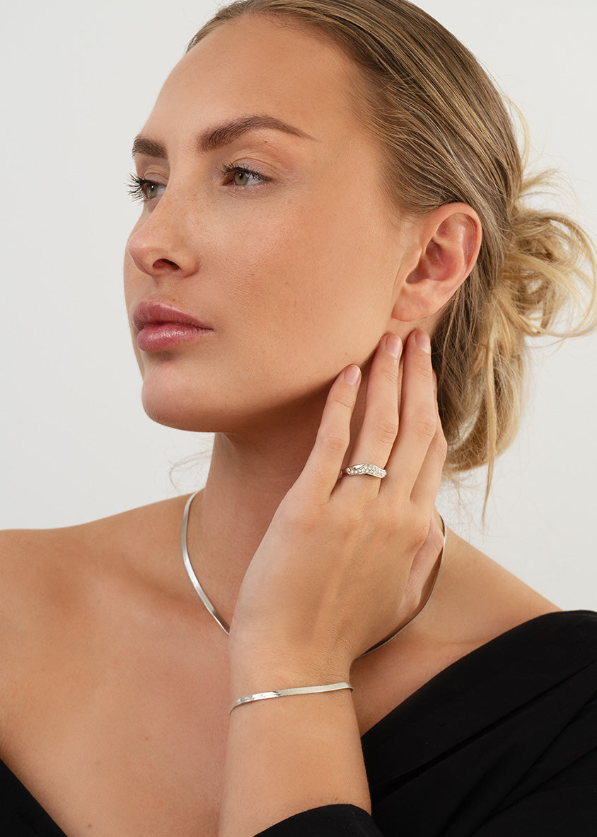 Vores smykker i 925 sterling sølv er stemplet under vores sub-brand SLD og certificeret af Dansk Ædelmetalkontrol. Mange designs er belagt med et tykt lag 18K guld og beskyttet med e-coating for ekstra holdbarhed. Vi anbefaler dog stadig at følge vores plejevejledning for at bevare glansen.