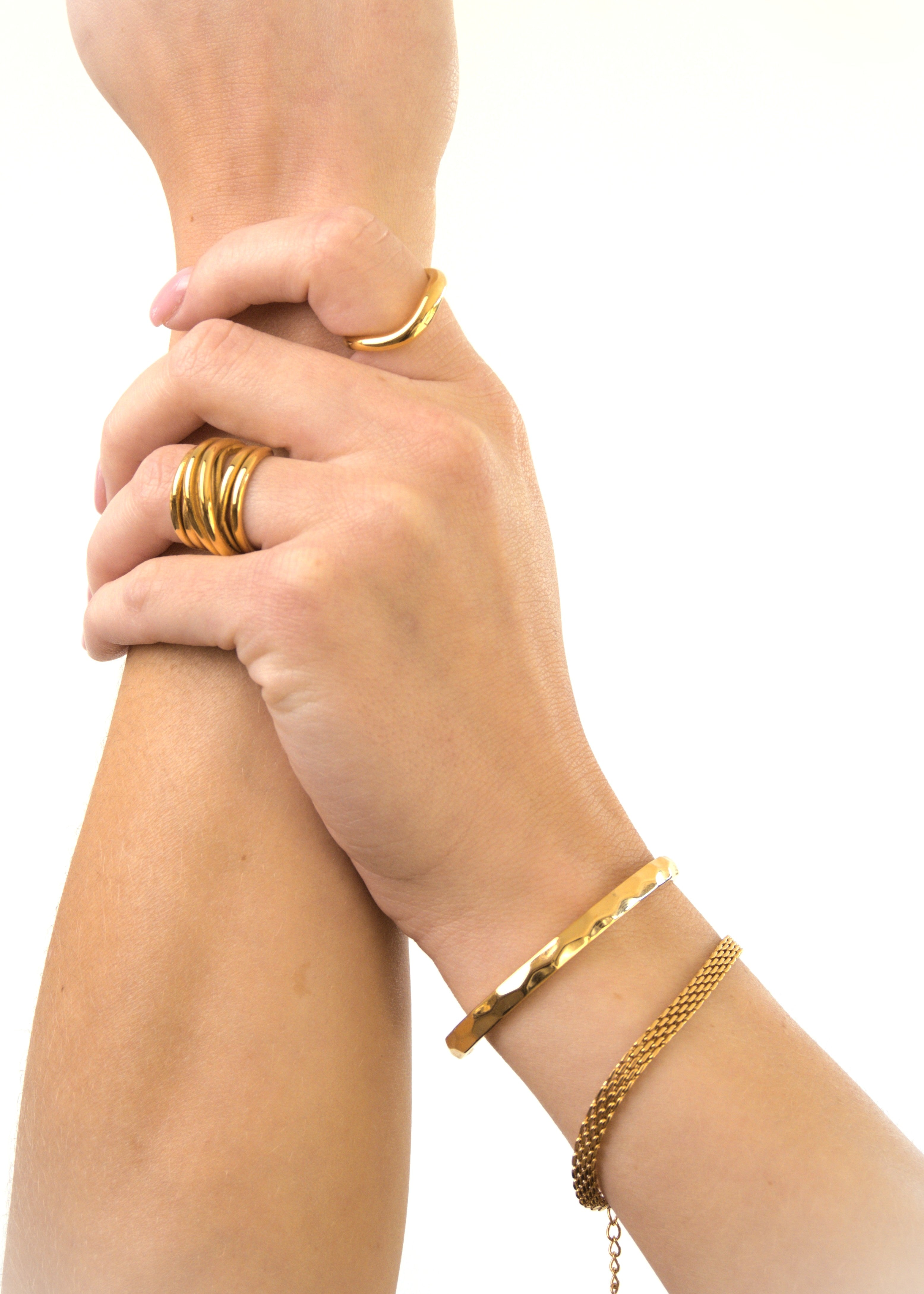 Vores premium rustfri stål er af højeste kvalitet, sikkerhedstestet og fuldt EU-godkendt. Guldbelagte designs bruger avanceret PVD-belægning, som gør dem op til 10× mere holdbare end traditionel forgyldning. De er meget slidstærke – selv i havet, poolen eller fitness – men vi anbefaler stadig at behandle dem med omtanke. Vi tilbyder 2 års garanti på vores produkter.